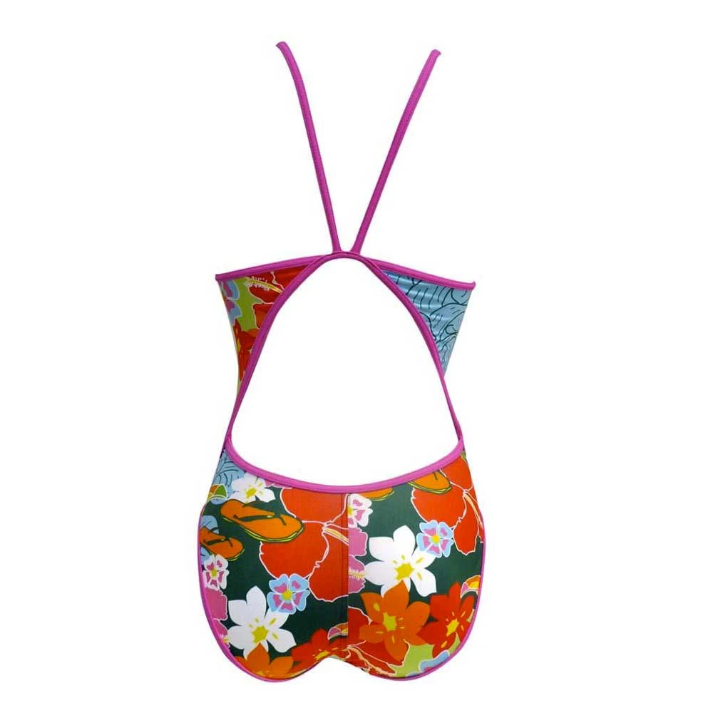 This colourful ladies and girls swimsuit offers a really comfortable fit. The colours will stay vibrant and it features secure, flat locked seams. It is fully lined in the front to make sure it is not see through. The thin straps allow greater movement and help you get a better sun tan. The fabric is very long lasting, it wont go baggy and loose its elasticity. Offering long lasting colour and chlorine resistance.